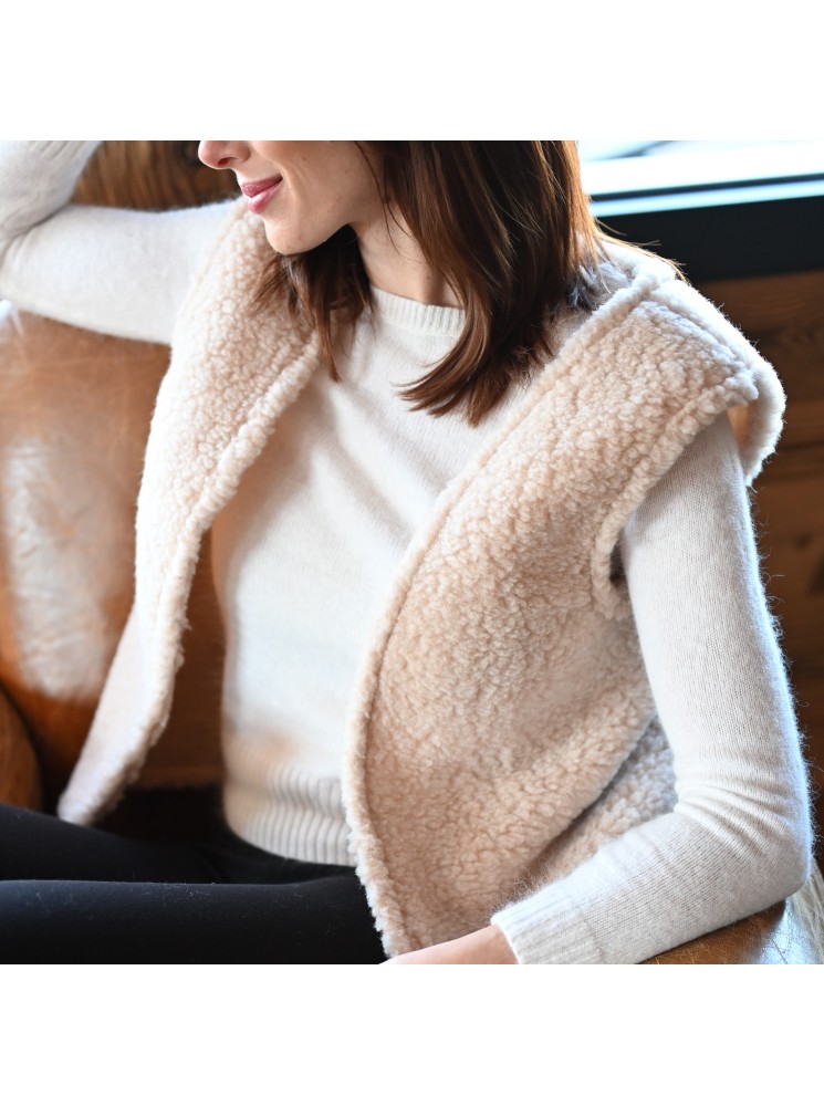 Gilet sans manches 100% Laine Beige Fabriqué en France