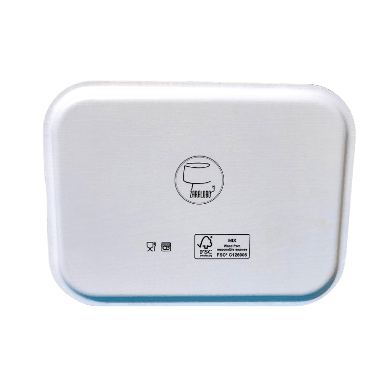 Plateau à usage alimentaire fabriqué en bois de hêtre avec une surface à base de mélamine résistant à la chaleur, à l’alcool et aux UV.